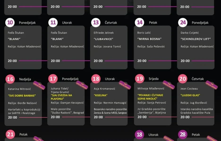 Uzimajući u obzir izuzetan interes tokom oktobra 2025. godine, kada su sve predstave bile rasprodane u rekordnom roku, Kamerni teatar 55 želi omogućiti publici da na vrijeme osigura svoje mjesto i u mjesecu novembru.